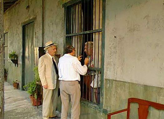 From the set of "Nobody Writes To The Colonel", the film by Arturo Ripstein.