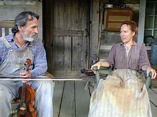 Iris DeMent on the set of "Songcatcher", relaxing between takes with actor Muse Watson (she plays "Rose Gentry" in the film).